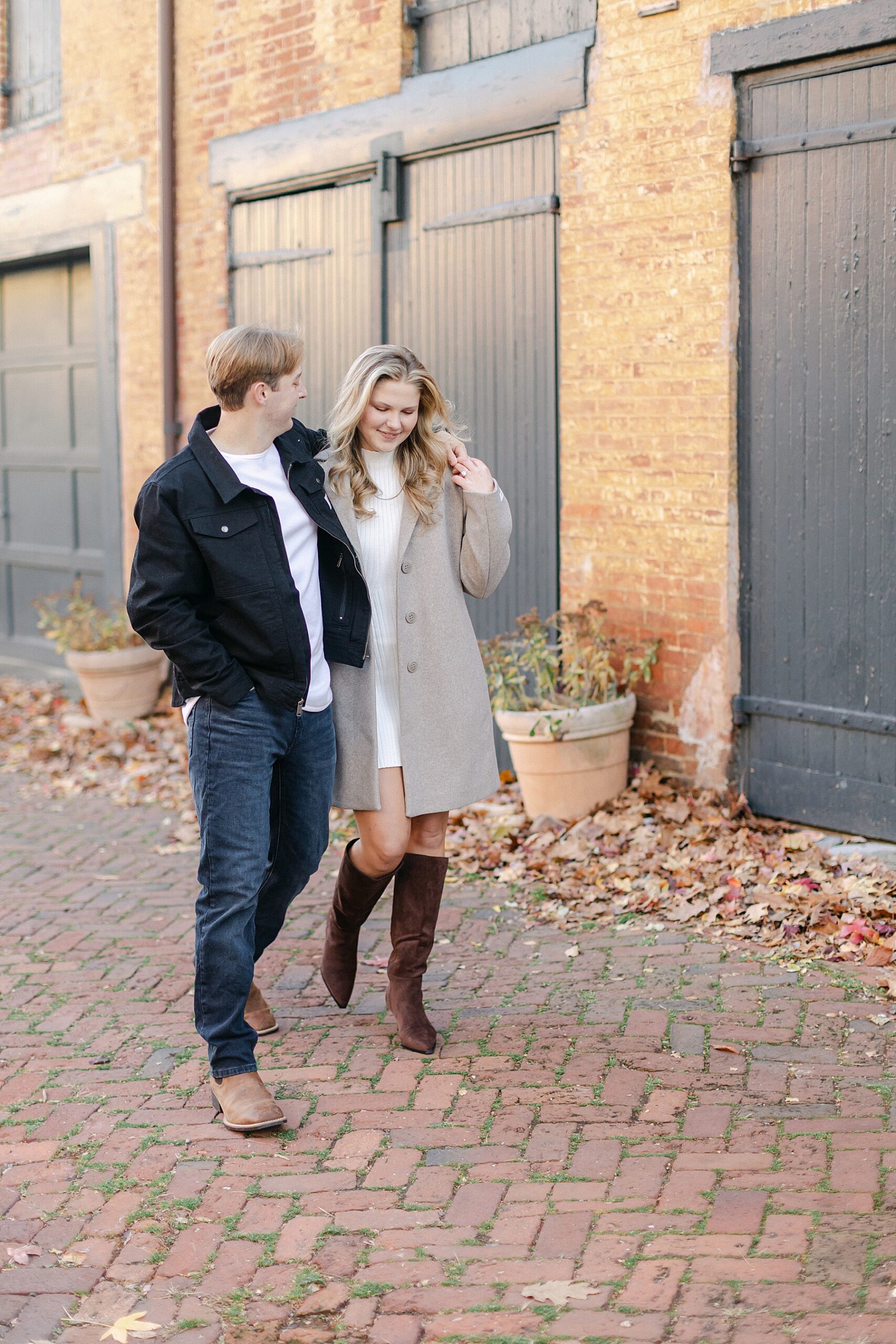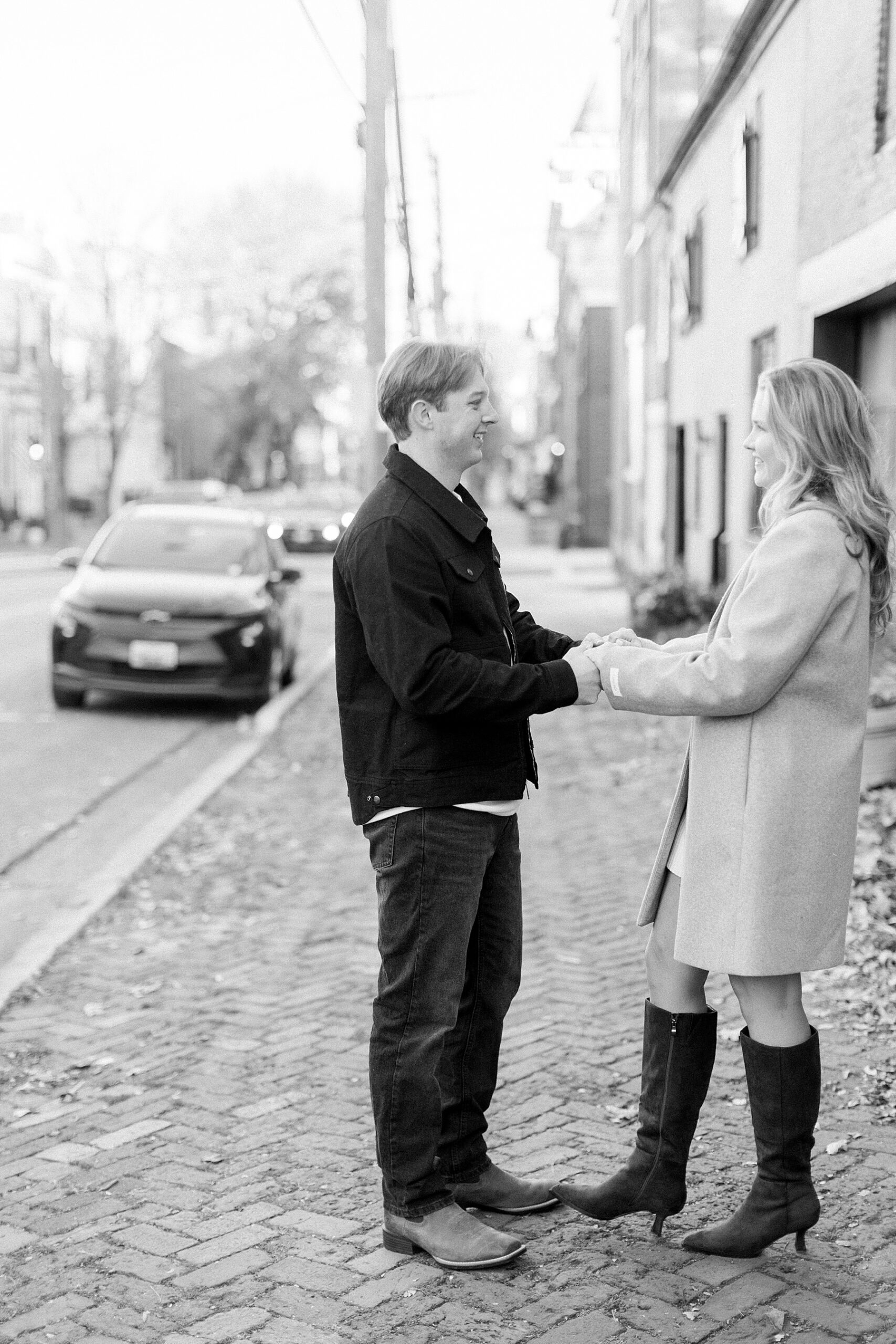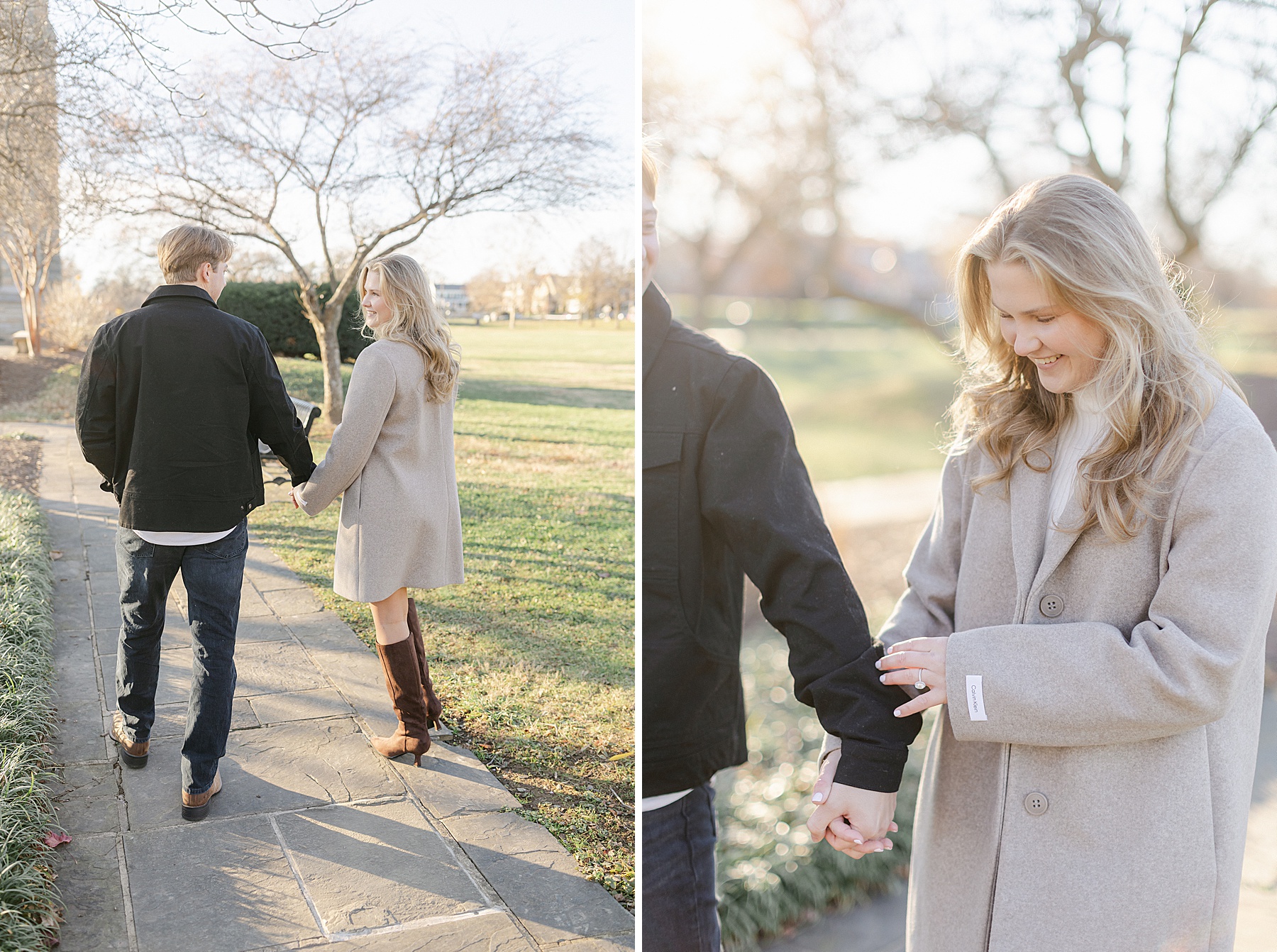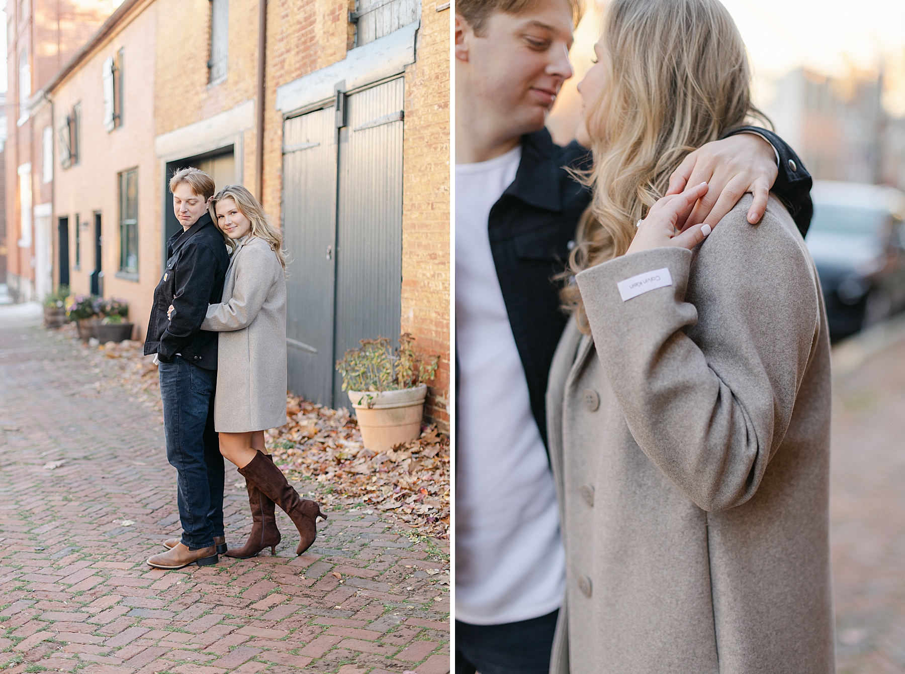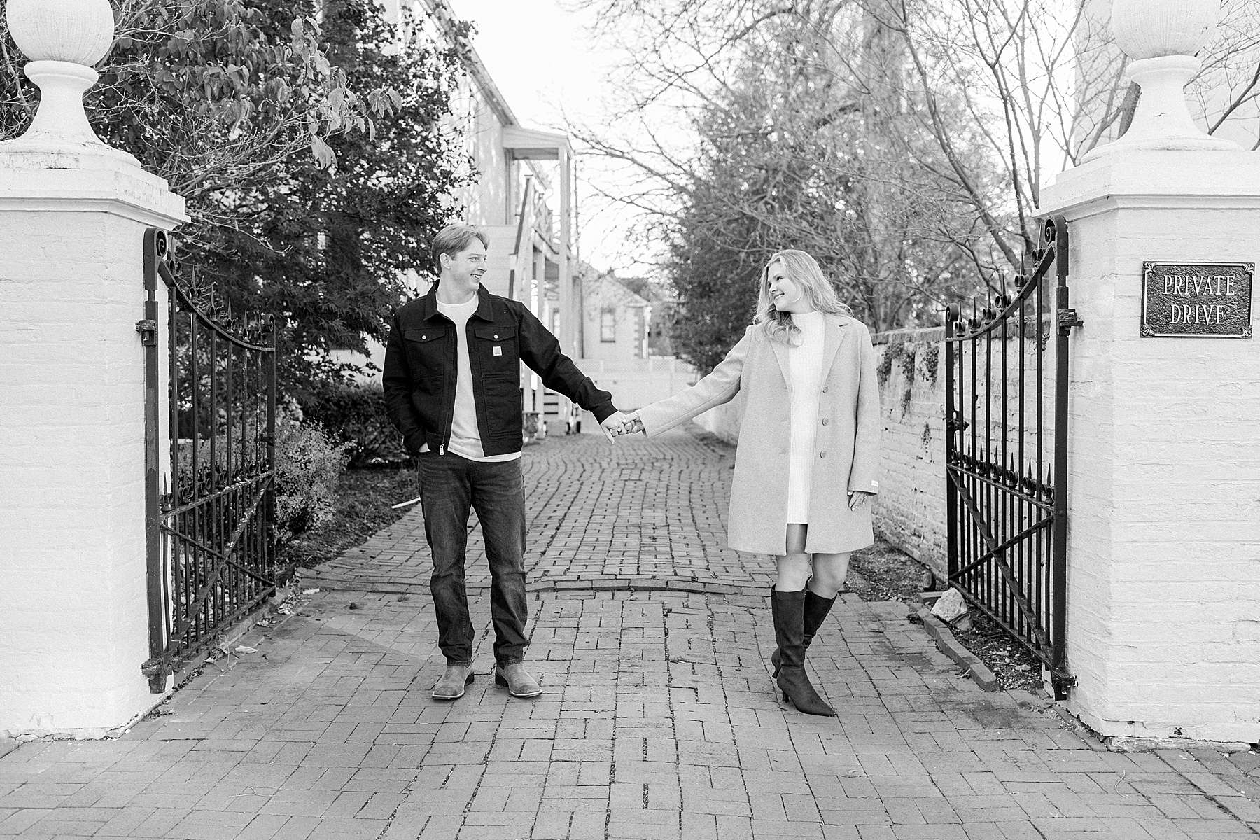 Well would you get a look at this incredibly glowy, gorgeous winter light we had for Maddie + Riley’s downtown Frederick engagement session!? Consider this my official campaign to make cold weather engagements a bigger thing in the wedding world. Sure, my fingers were moving a little slower on the camera buttons and we were chattering in between cozy poses but the light, the liiiiiiiight! She was golden from start to finish and it was worth every shivering second to make this magic come to life.