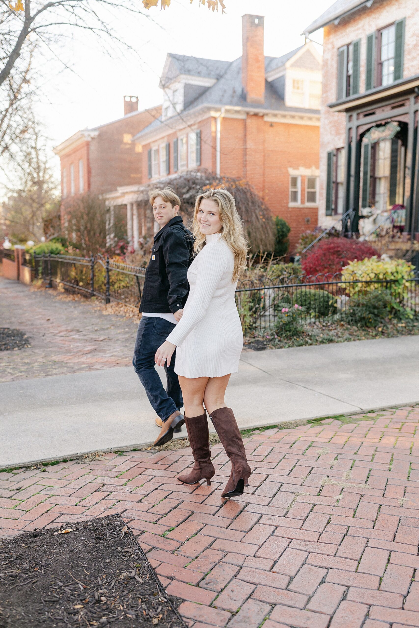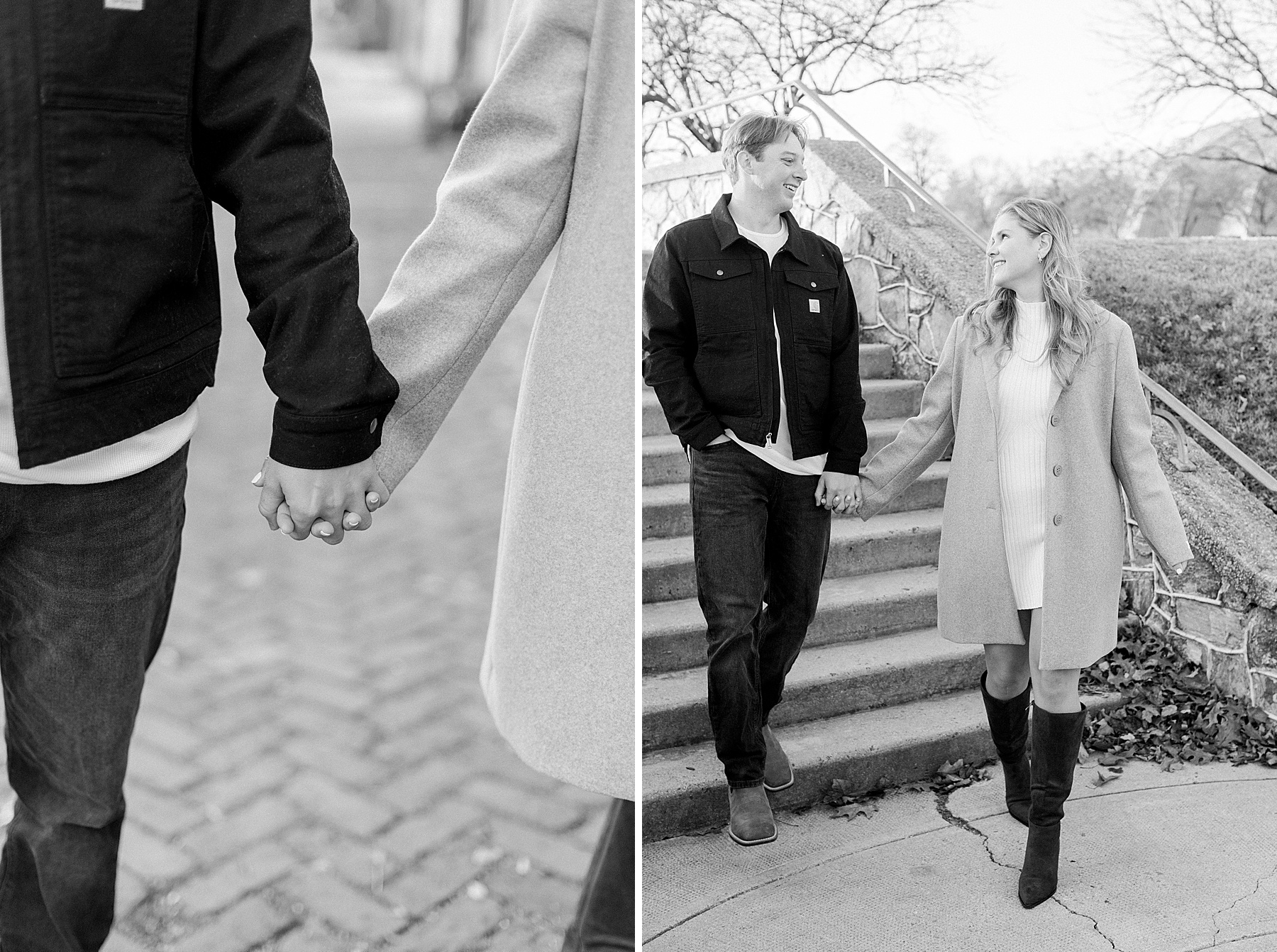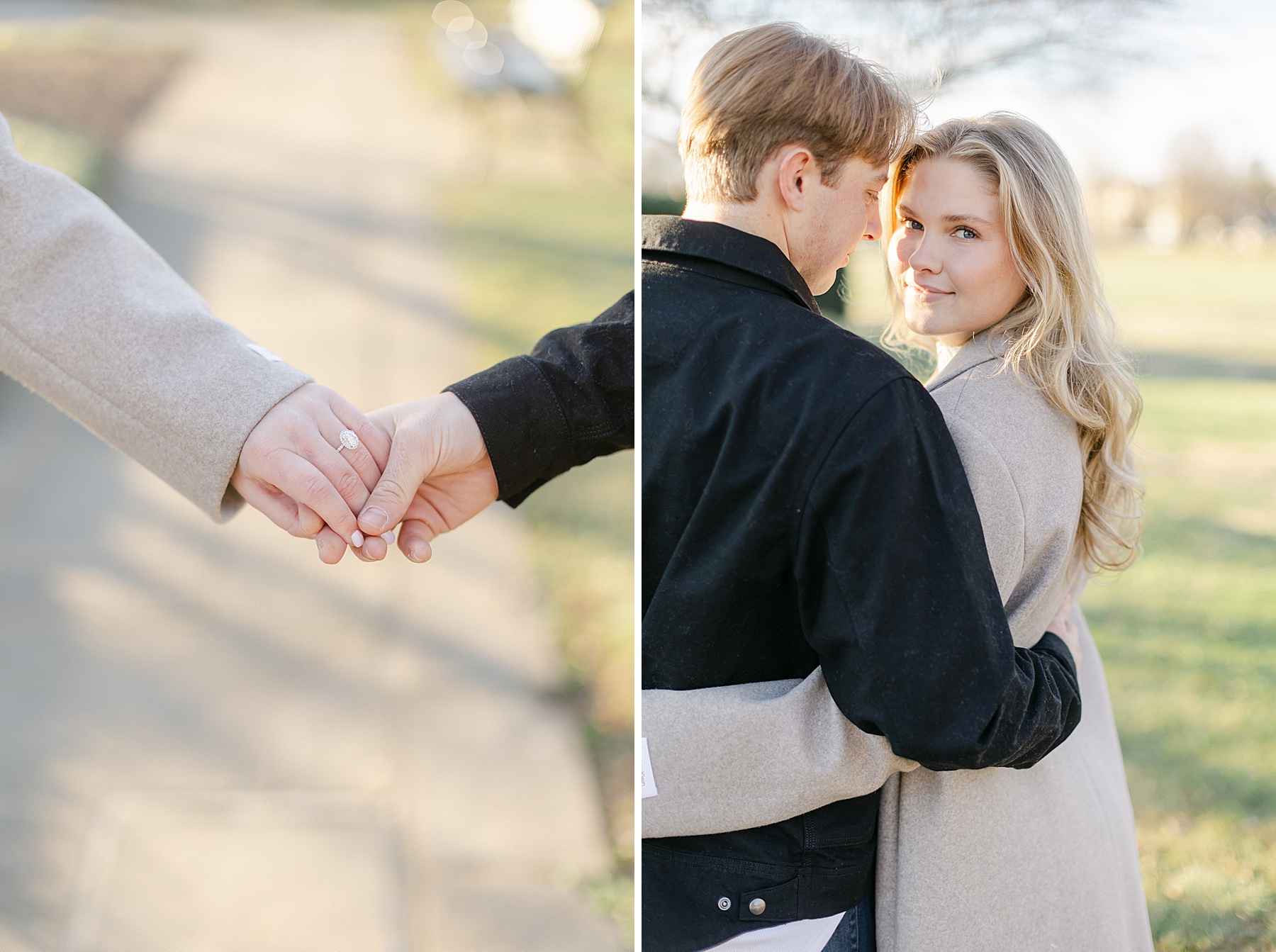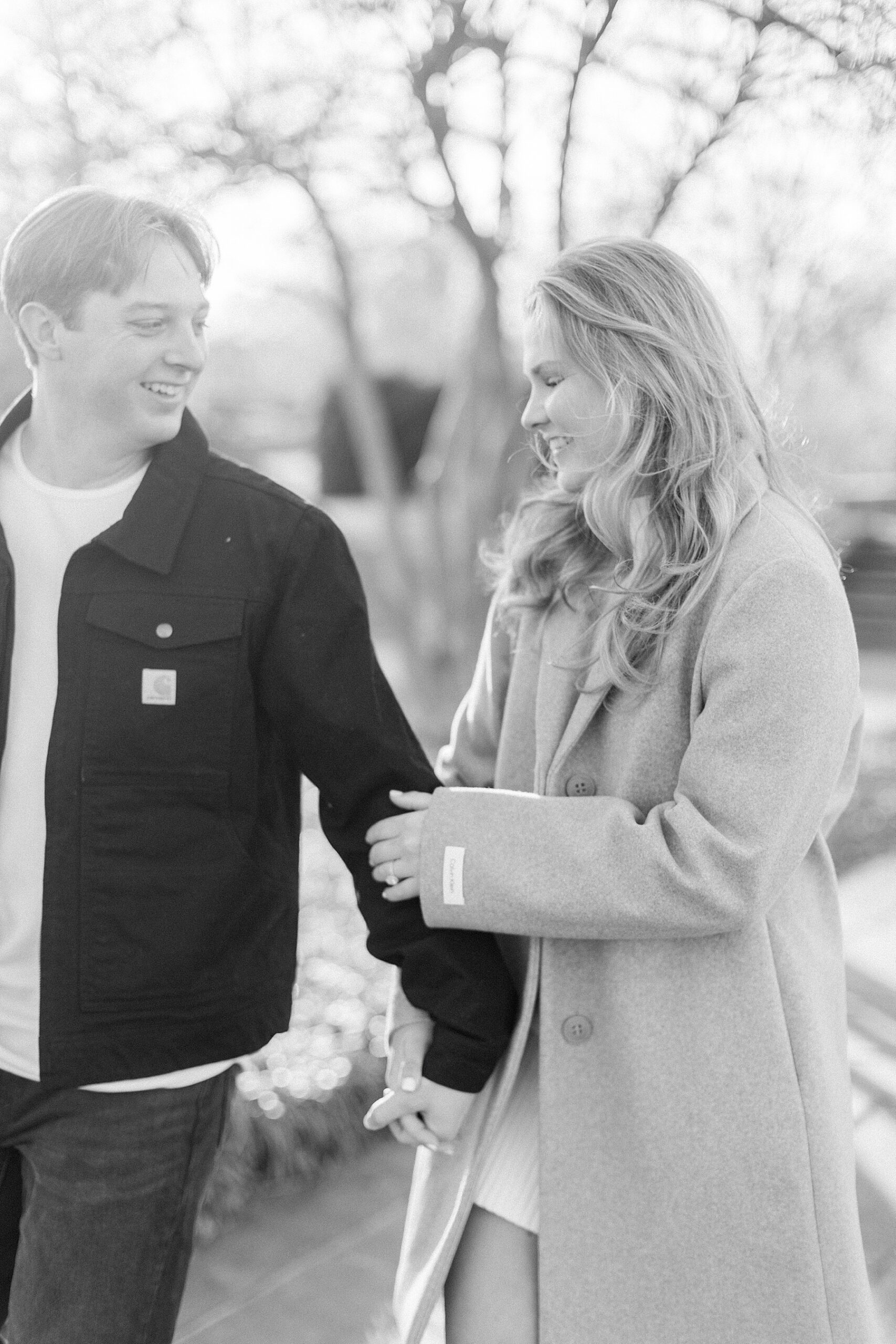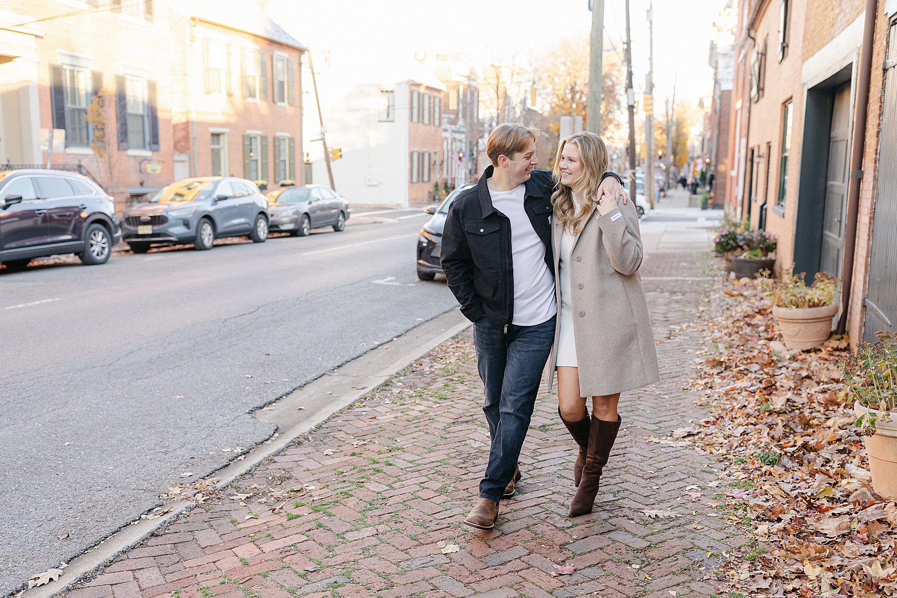 Well would you get a look at this incredibly glowy, gorgeous winter light we had for Maddie + Riley’s downtown Frederick engagement session!? Consider this my official campaign to make cold weather engagements a bigger thing in the wedding world. Sure, my fingers were moving a little slower on the camera buttons and we were chattering in between cozy poses but the light, the liiiiiiiight! She was golden from start to finish and it was worth every shivering second to make this magic come to life.